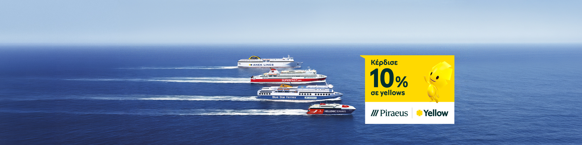 Κλείσε τώρα τα ακτοπλοϊκά σου εισιτήρια μέσω των bluestarferries.com, hellenicseaways.gr, anek.gr, superfast.com ή του seamore app και κέρδισε 10% σε yellows.
